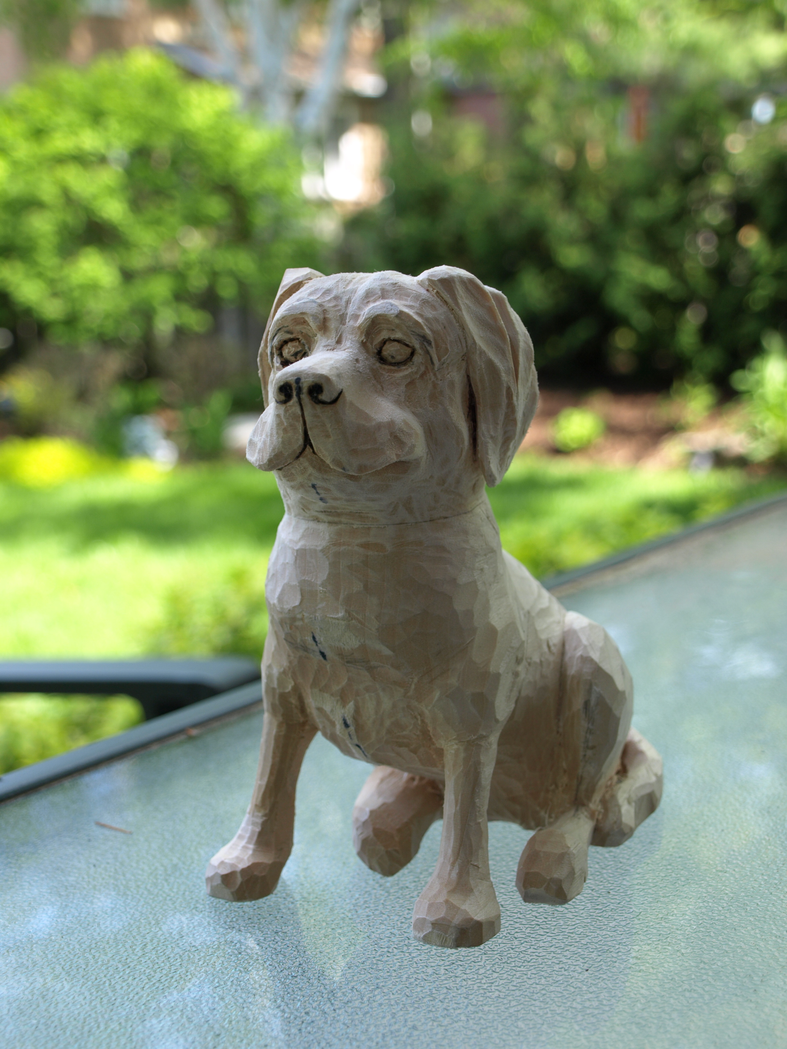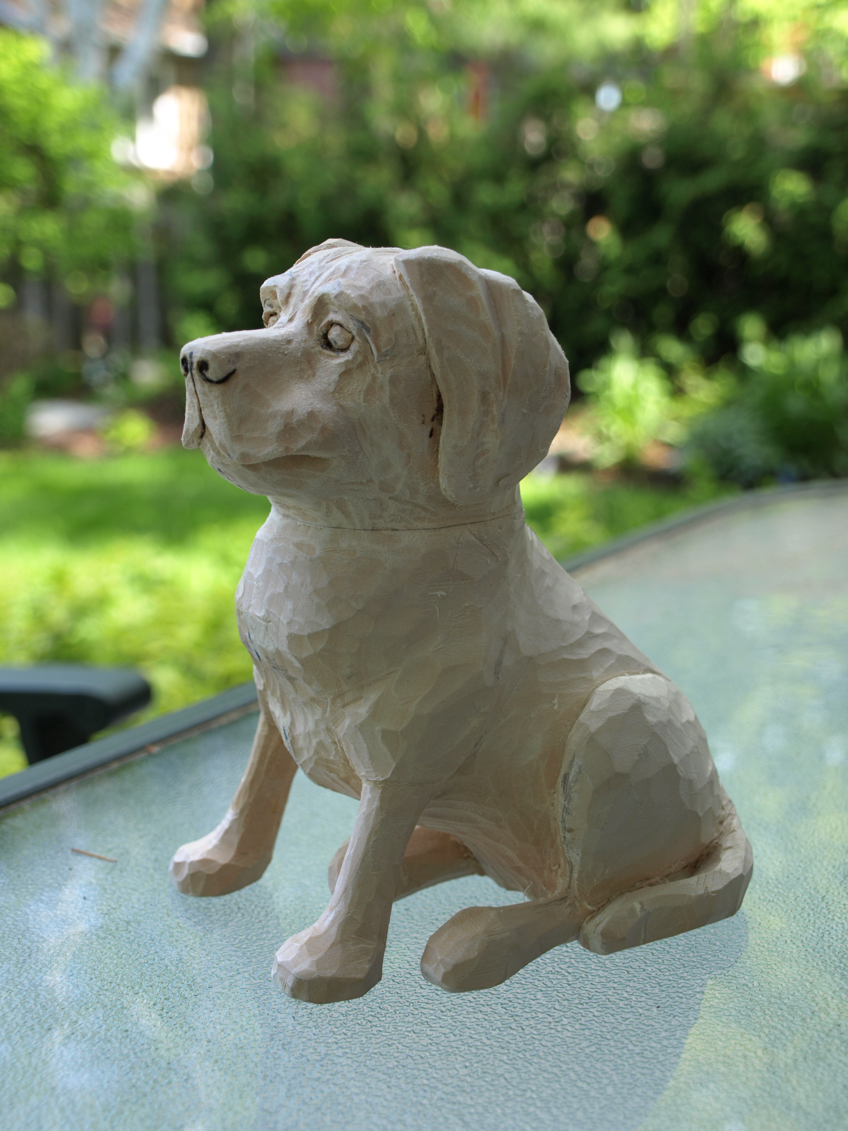 Here are a couple of pictures of Lola as she takes shape. As you can see, things are finally starting to green up in the background. The way the weather has been so far this year, I’m suspecting about three weeks of grass cutting before the snow starts to fly again. I should mention that Toby is pretty much completed…I just need to urethane the oak base before I take a few photos for the blog.