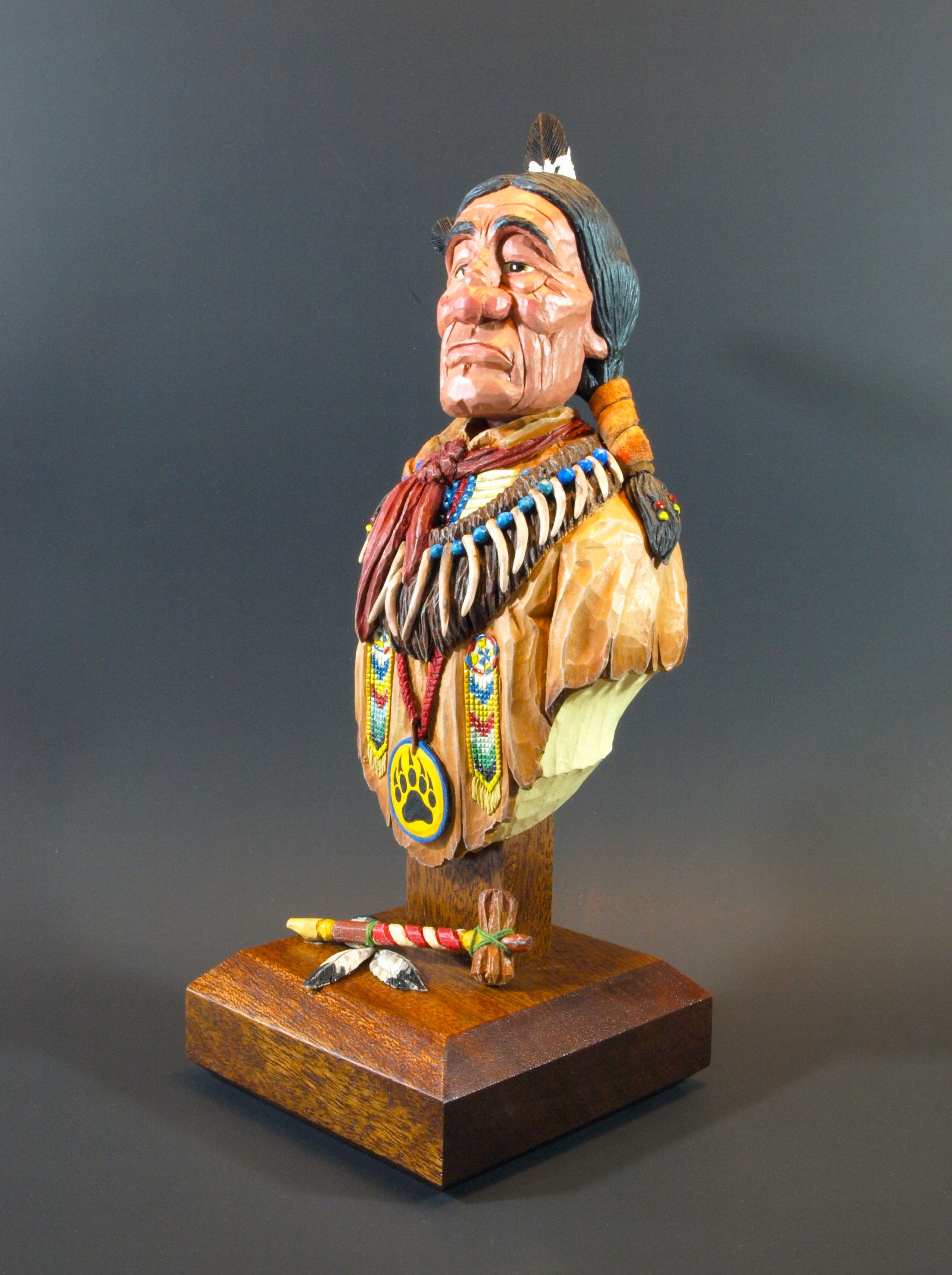 I took a minute today to take a few nice pictures of George Proudfeather…a bust that I completed some time ago but didn’t get around to taking a picture of…in “studio” style.  Before you get to thinking that I have a super professional studio, I’ll tell you that it consisted of a piece of board paper sitting on top of our dining room table.