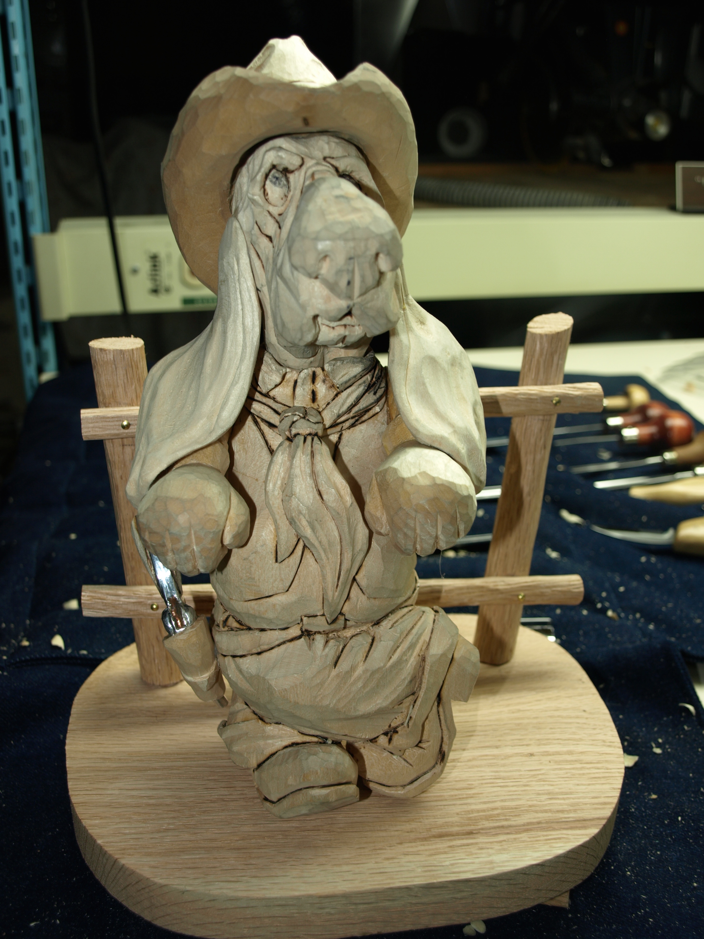 The base for Buford the Cattle Wrangler is going to feature a cedar post and rail fence for him to rest against.  I remembered seeing a nice carving by Lynn Doughty of a cowboy leaning against a fence and kept that backdrop in mind as I pulled this base together.