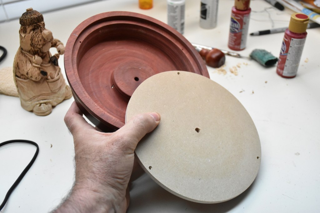 ” You Are My Sunshine ” is a song that I sang often to Emily as a baby and as Ada has already heard repeatedly in our few visits together! I didn’t show it in the photo below, but opposite the side where I placed the music box, I drilled a number of holes in the bottom plate so that the sound could resonate somewhat like a guitar.