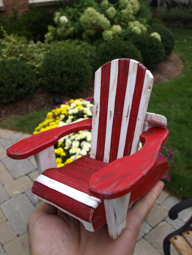 I actually tried a number of different paint schemes for the Muskoka chair as they come in pretty much every colour of the rainbow and a variety of different themes…solid colours, alternating colours, stained wood, etc. The one thing in common, though, is that they tend to be well used and having sat out in the weather for the summer season ( and the winter if you forgot to bring them in ), they tend to look a bit weather worn.