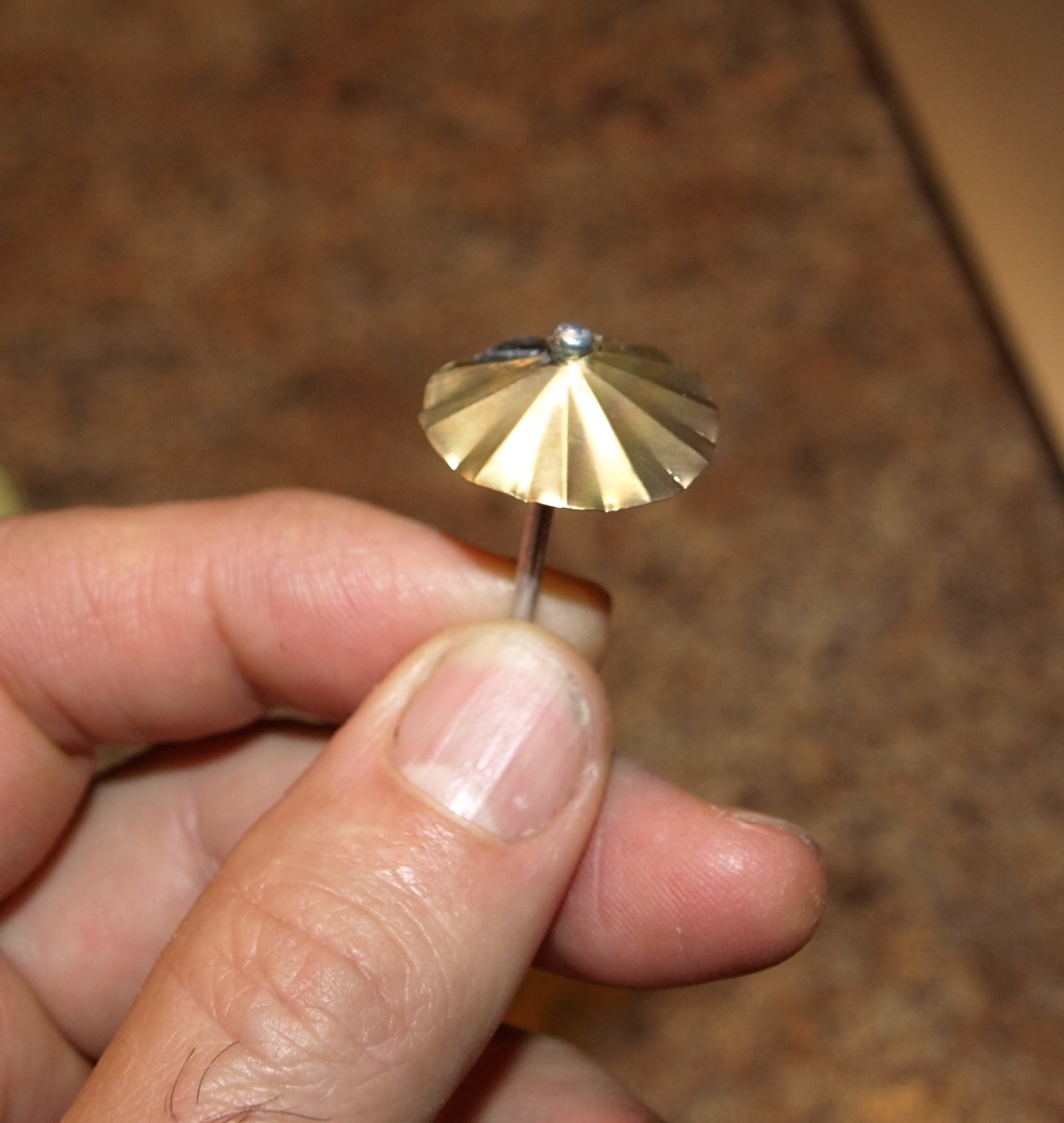 Here’s what it looked like at that point. You’ll notice that each of the four corners have an additional layer of brass to give the paper the impression that there are several pages. I did this by just cutting little triangles and soldering the triangles in place and later curling the two layers away from each other. I actually was quite surprised that the brass took soldering but the joints are very strong.