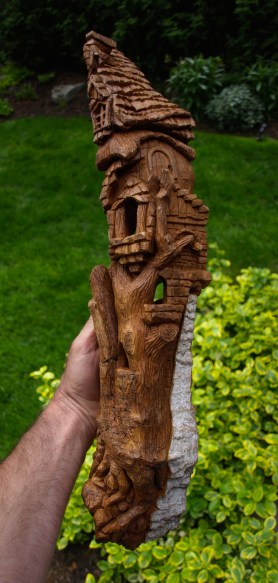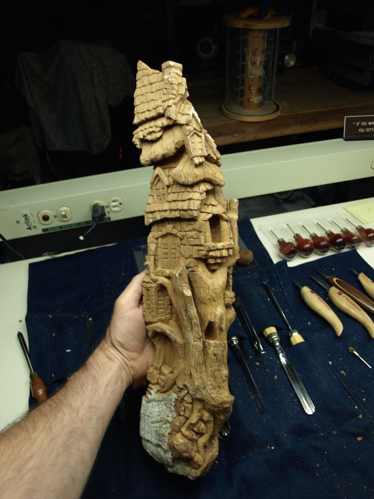 And now for a bit of a departure from caricature carvings and a return to bark carving. I’ve completed two other bark carvings that you can check out in previous posts…the Cottonwood Mill and Castle Cottonwood.
