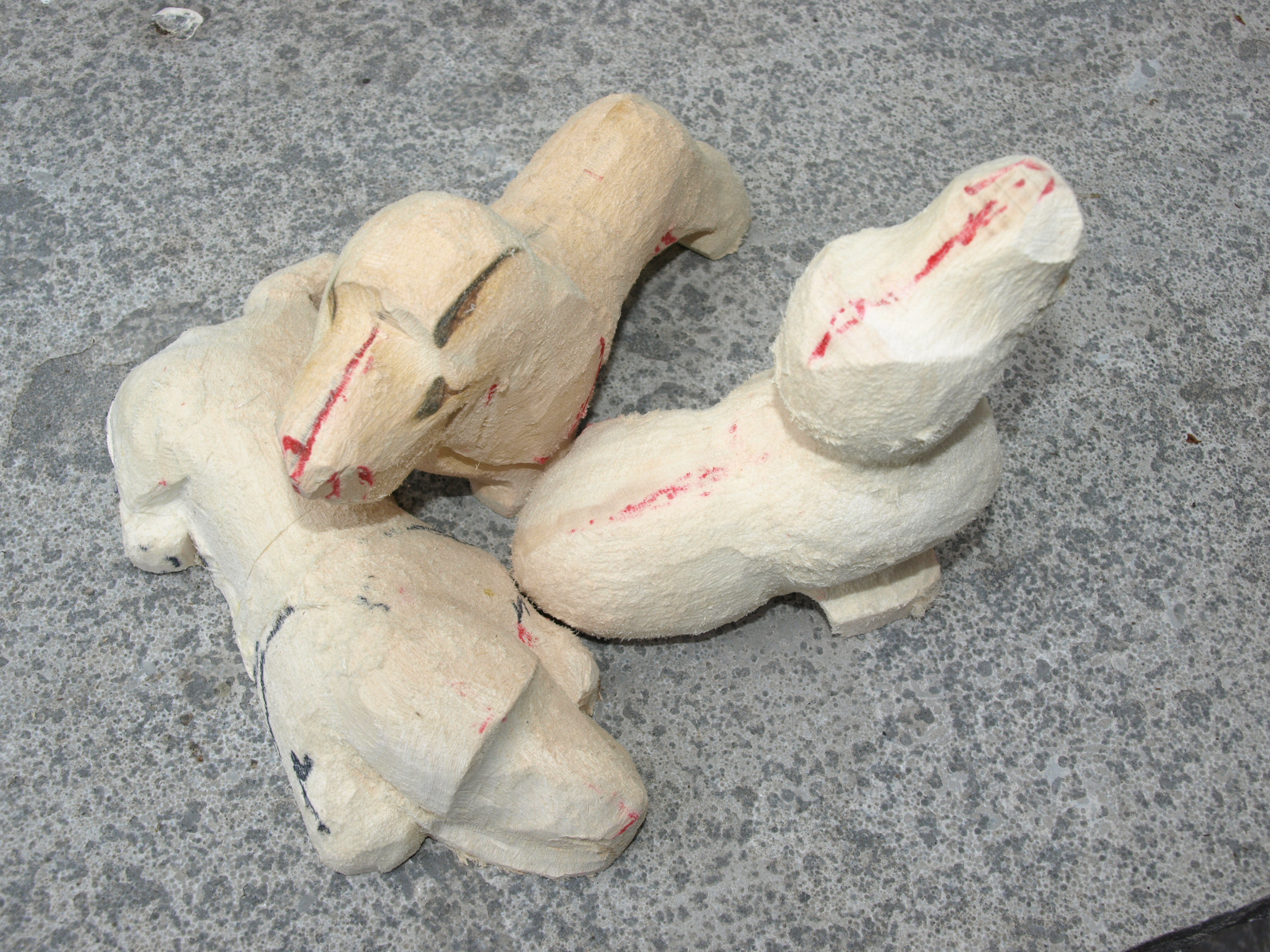 Everything short of the squirrel has now had a light coat of white gesso applied and is ready for the painting phase. As usual, I’ll paint each piece separately and then pin and glue the pieces together after painting.