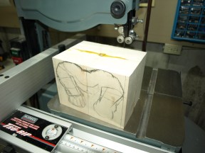 You’ll recall that this carving of the happily beaten up hockey player will be called “Two Minutes for Fighting” and will feature our hero spending that time in the penalty box.  The clay torso and penalty box boards were a result of a not-so-very-successful job at trying to carve his posture just using the two dimensional drawing that I sketched up.  This three dimensional clay sculpture is really helping me bring this little guy to life.