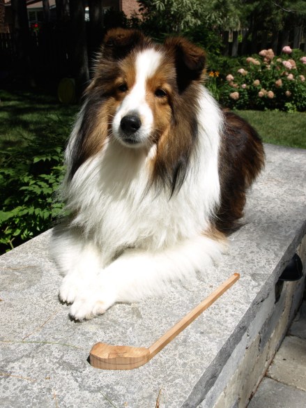 Bruzer was in need of some lumber so Rosie and I chose a piece of cherry today and cobbled up a good strong hockey stick.  That bulb at the end of the stick was to allow me enough room to carve a really wicked hook along with many wraps of hockey tape!  Rosie was only mildly interested in the whole thing.