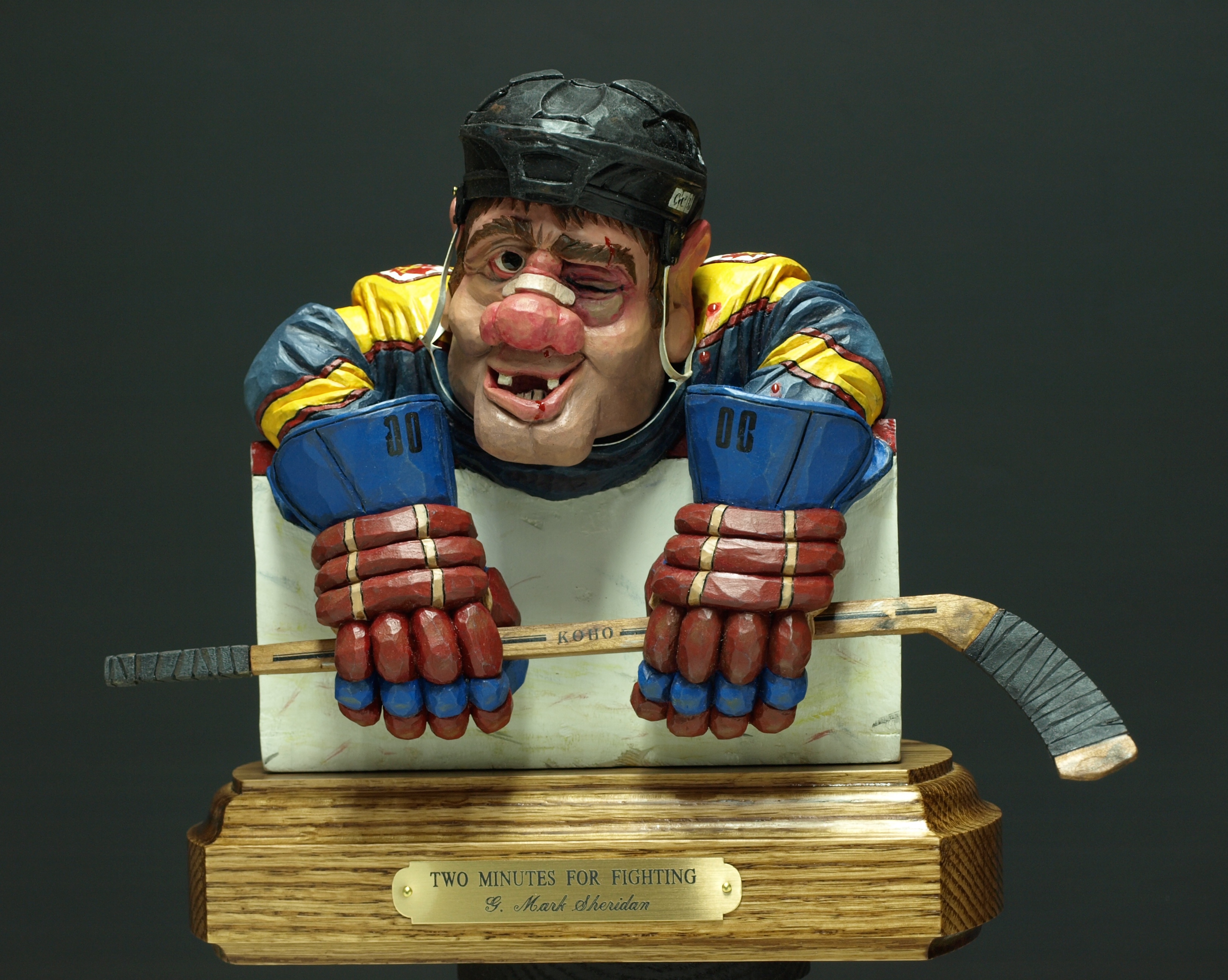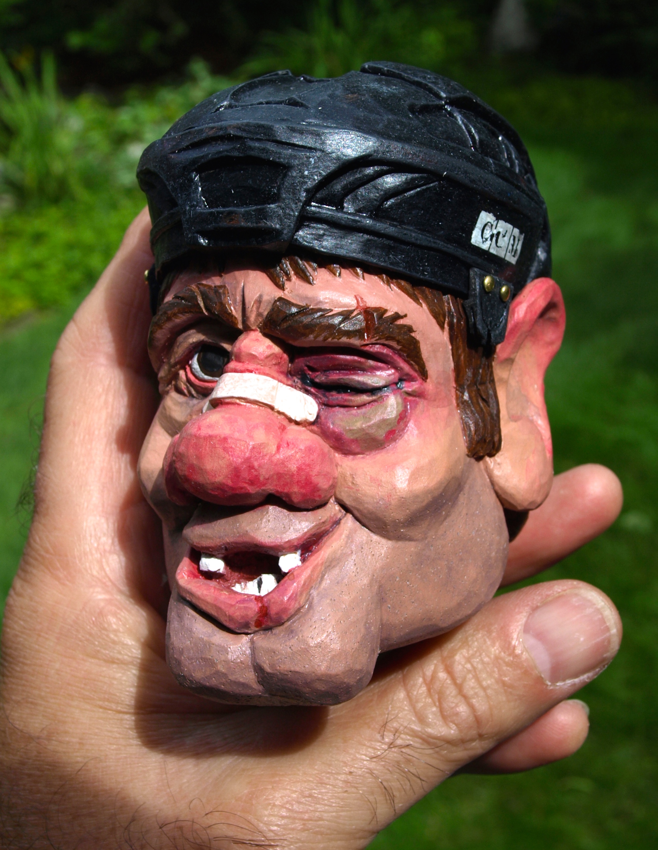 I know that my timing isn’t the greatest with the Stanley Cup just wrapped up and the summer temperatures finally here…but I’m going to finally finish my carving of the penalty-serving hockey player that I started some time ago.