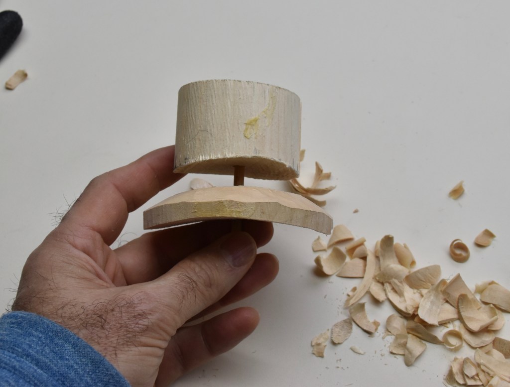 The shot glass was carved and then I built up just about a 1/16th of an inch of epoxy around what would be the rim. I sanded the epoxy as flat as I could and then painted the wood and again covered everything in epoxy. I’m not over-the-moon about it…but it’s ok.