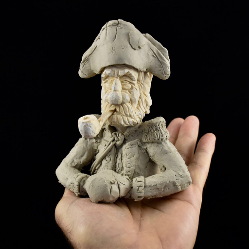 So, you’ll recall that I started off with the three heads that I carved, one of which looked like a Naval Officer…thus, Lord Horatio Weatherbee of the British Admiralty! I got things started with some clay to get a bit of an idea of what I was after as well as to set up a paper pattern to cut out the basswood blank.