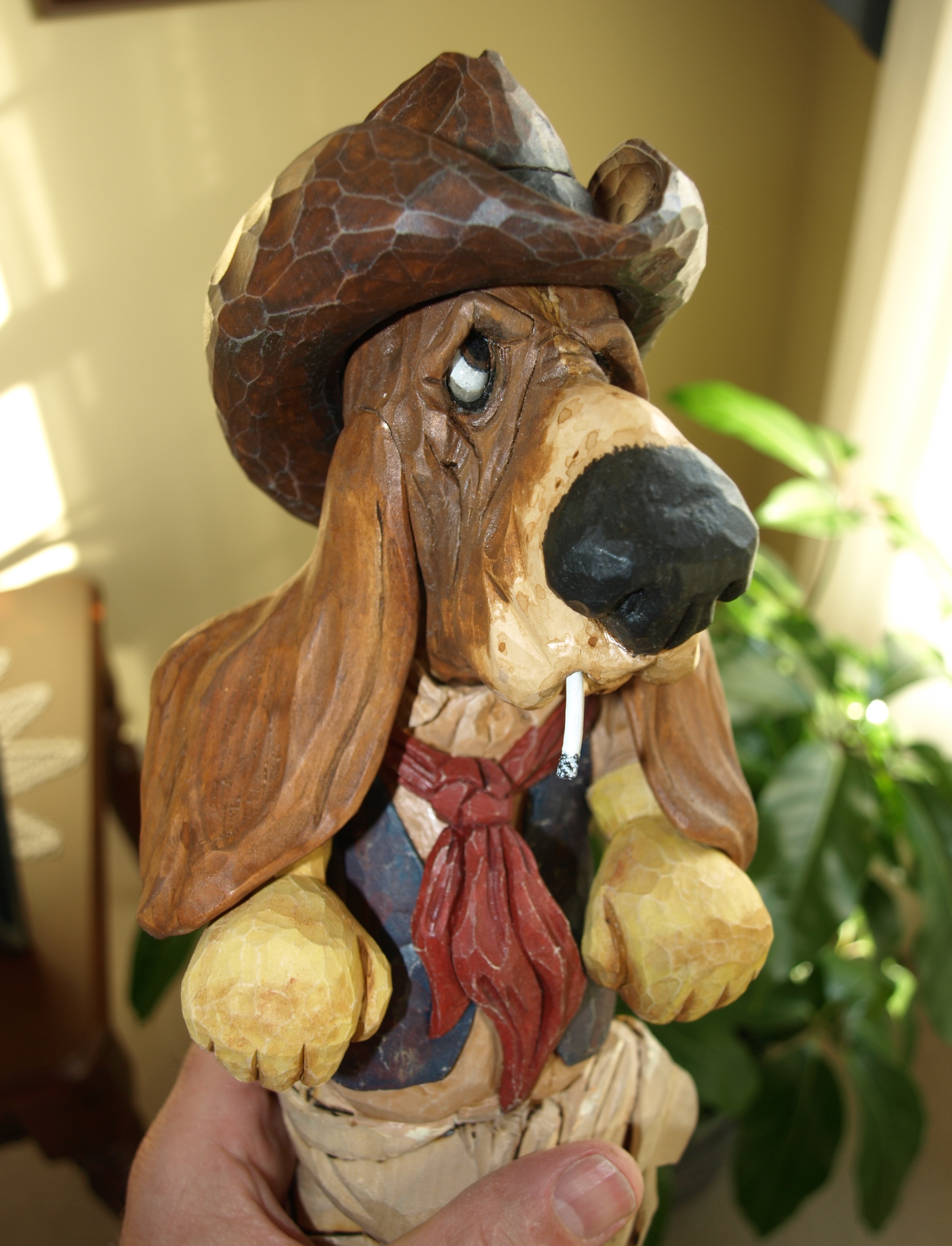 I think that the hat is looking pretty good and will suit this little hound cowboy…not quite a villain type but, out on the range, he ain’t no push-over either.