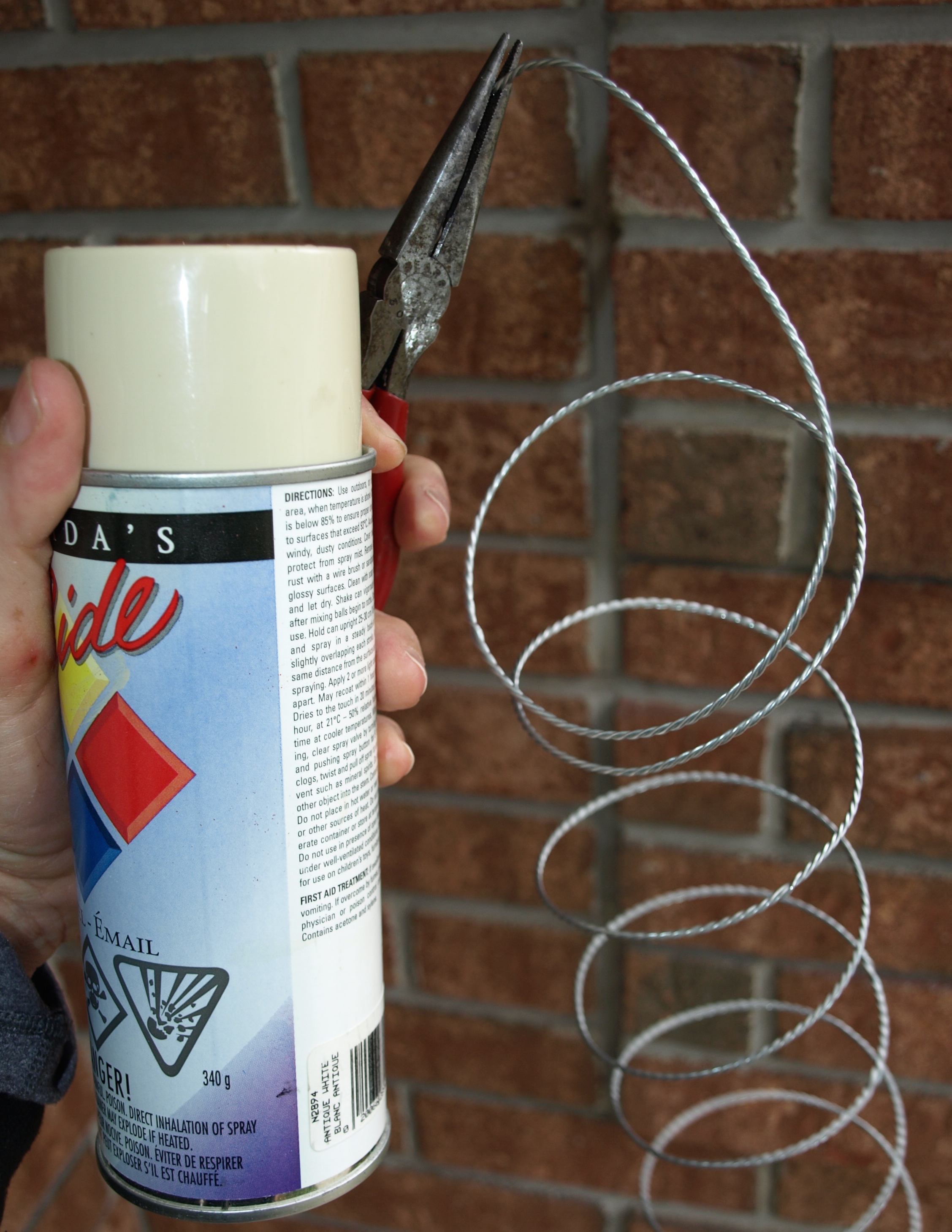 I think it turned out pretty well.Then I grabbed a cream coloured enamel spray can that I had in the shop and wound the rope around it so that it coiled. I thought that it would be easier to spray paint this way.