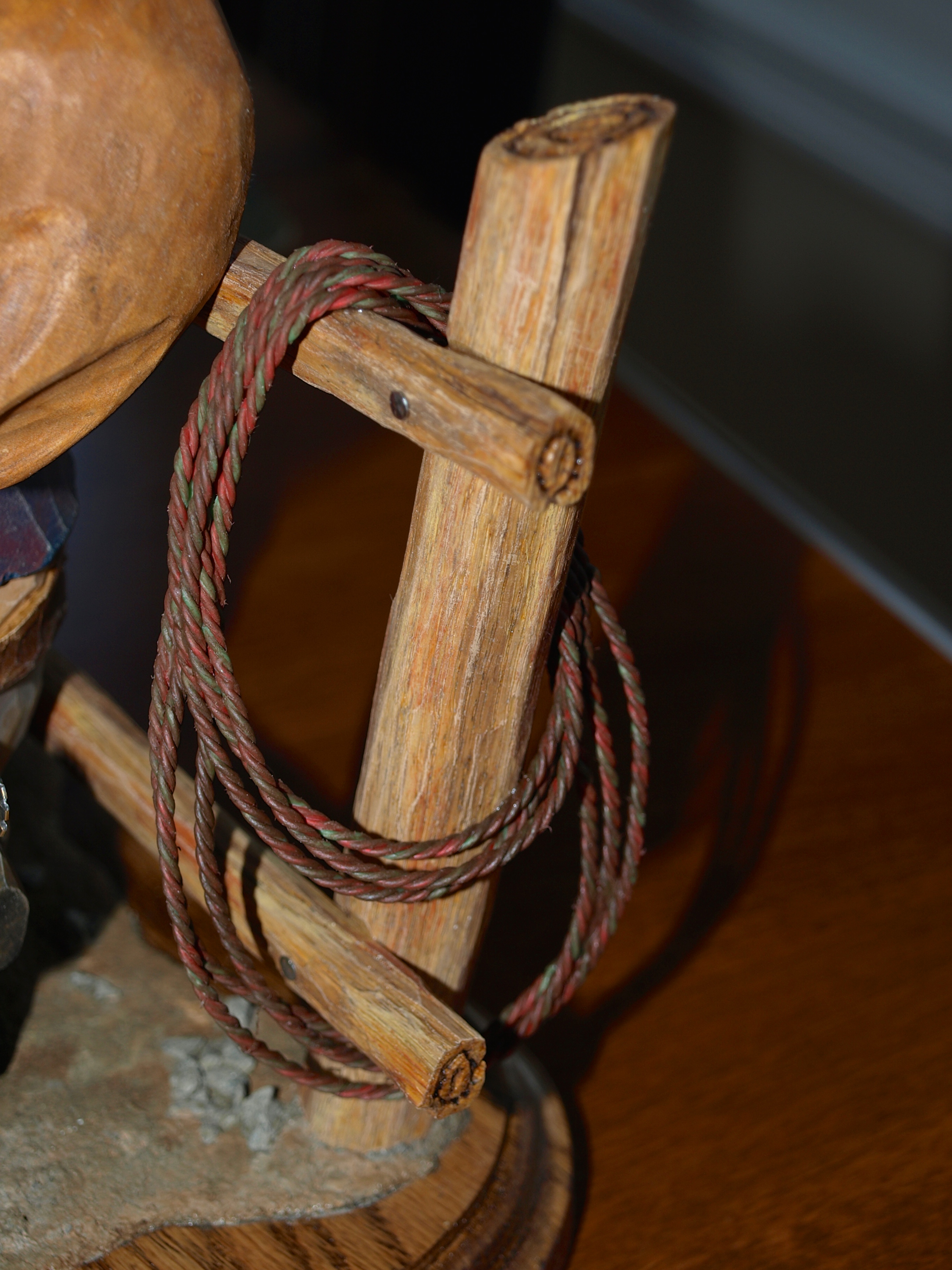 Well, I think I’ve come up with the rope that I’ve been looking to create. Lynn Doughty also gave me a terrific suggestion with the use of gun bluing that he’s used very successfully in his carving sculptures ( Outwestwoodcarving ) and I do want to give that a try at some point.