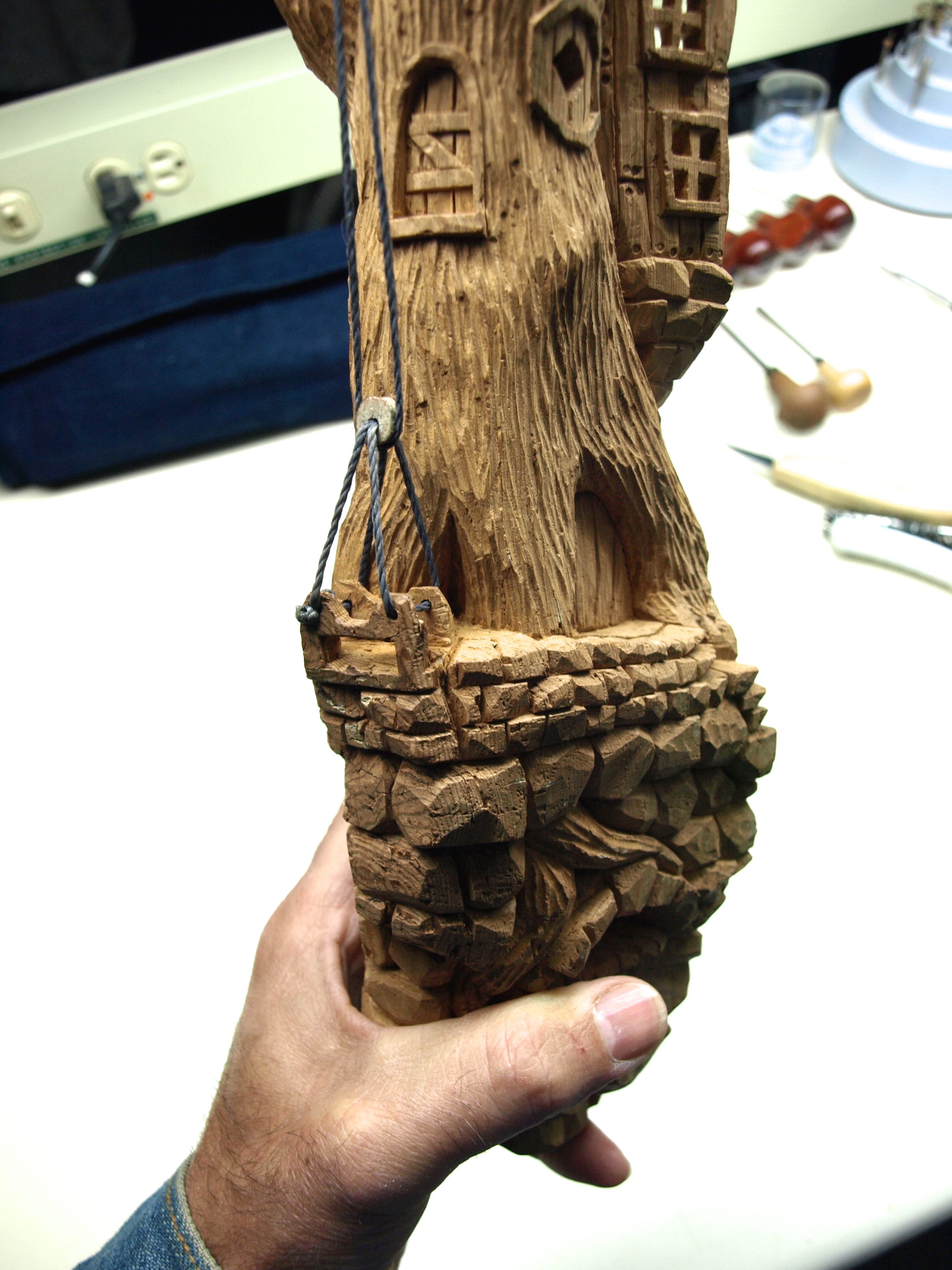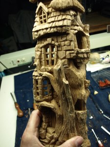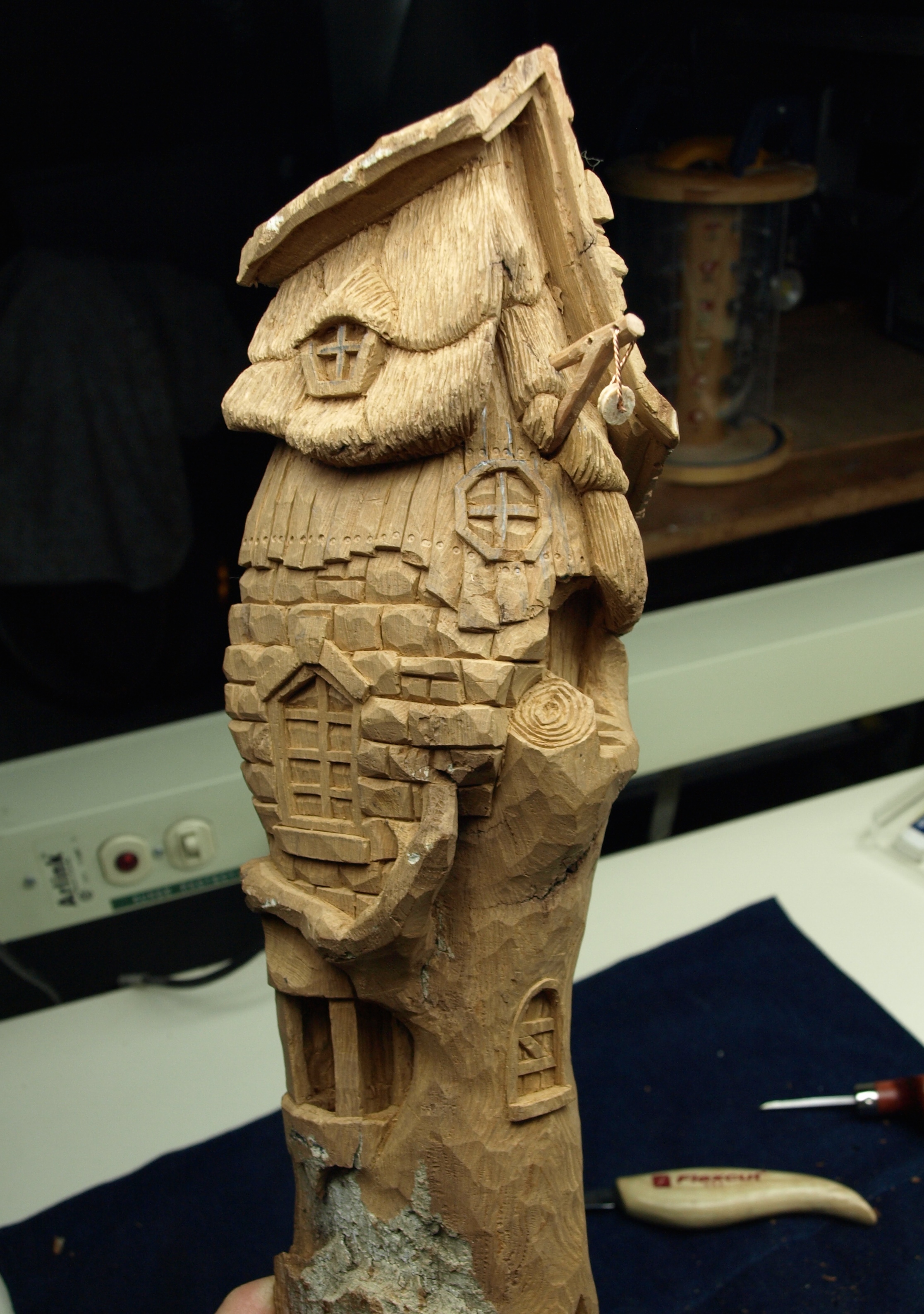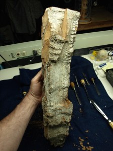I don’t try to make things too straight as the various odd angles just add to the interest in the wood. Keep your tools very sharp and try to slice the bark rather than use a blunt pushing action that could tear or break the bark. If you do break a bit of bark away, either carve around the void or just glue the piece back in place with some white carpenter’s glue.