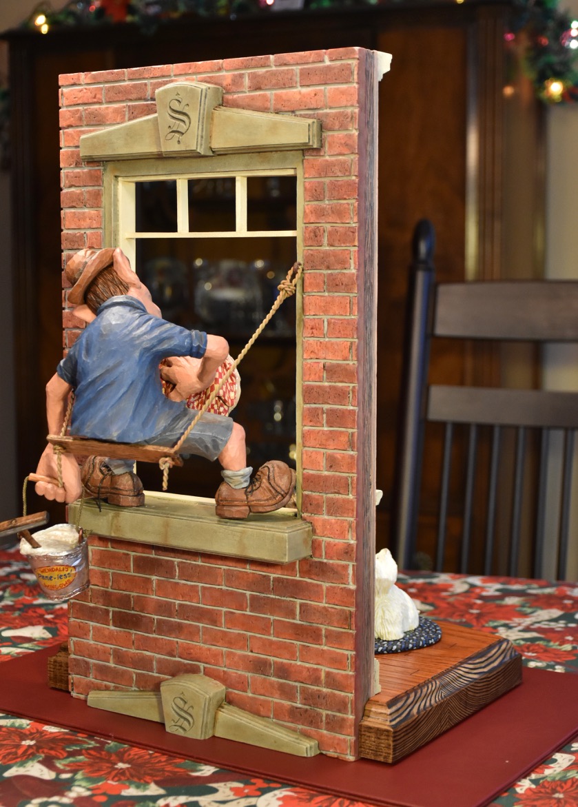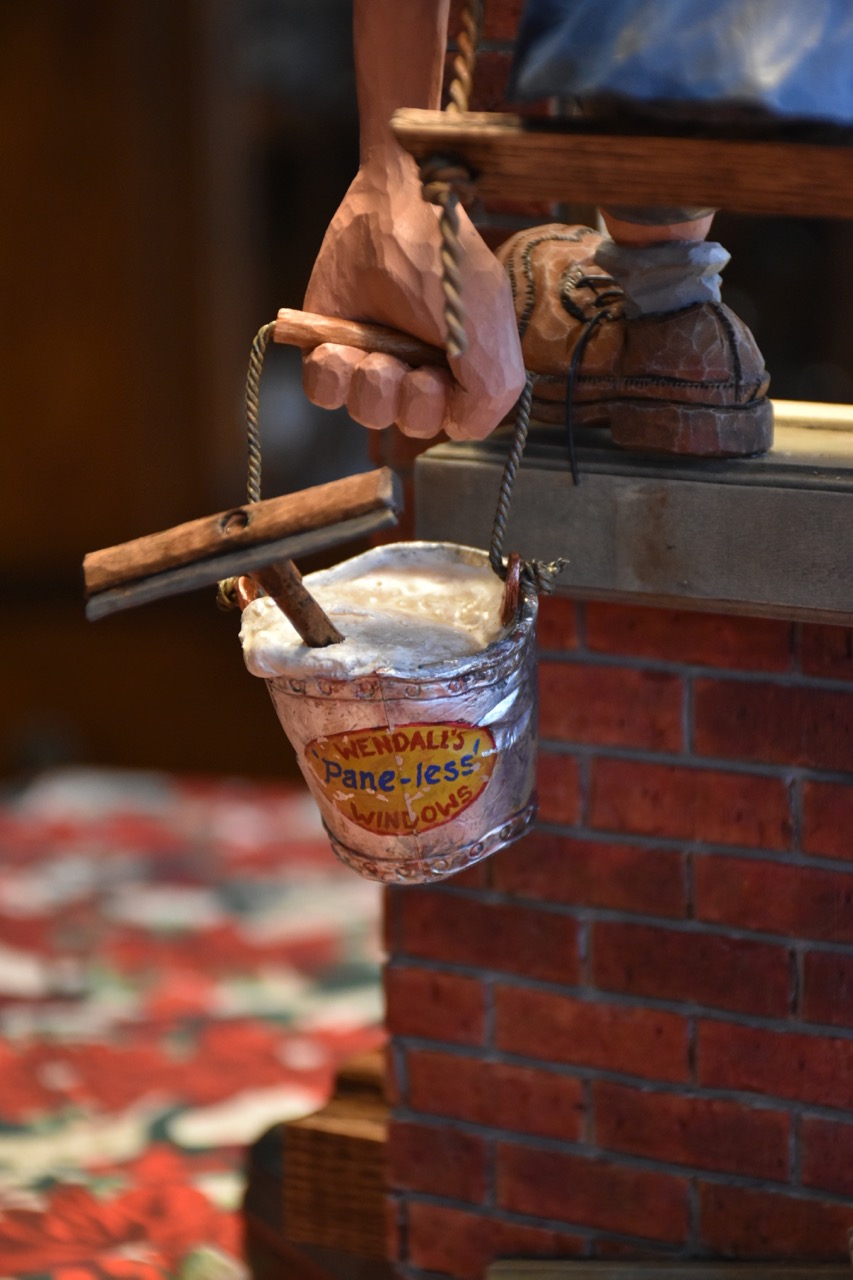 I had some fun in carving the rag that the window cleaner is using.  I should mention that the little fellow has adopted the name of Wendell.  He looks like Mervin from Mervin-the-Mover fame and we suspect that they’re probably brothers.